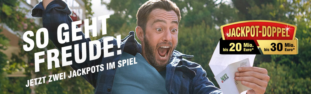 NEU Jackpot-Doppel: Jetzt mit einem Los um zwei Jackpots spielen. Über 400 Millionengewinne, jeden Tag 1 x 1 Million € oder 100 x 10.000 €, Traumreisen, Autos, Häuser oder eine Private Insel gewinnen...